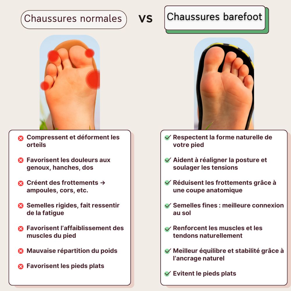 "Les chaussures barefoot favorisent une posture naturelle, renforcent les pieds et peuvent réduire certaines douleurs. Utilisées régulièrement, elles aident à préserver équilibre et mobilité sur le long terme."