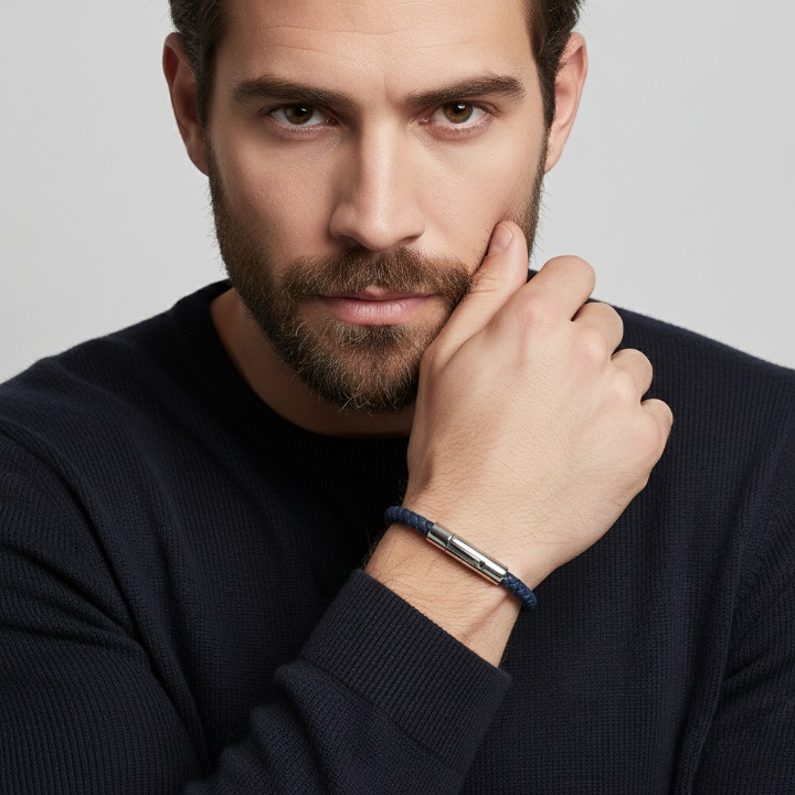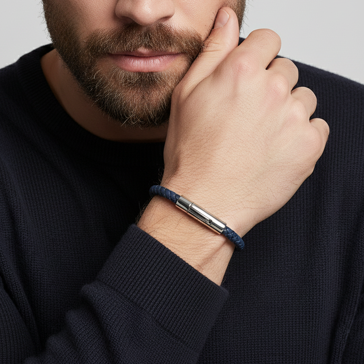 Bracelet Cuir Tressé Bleu Marine Atlas