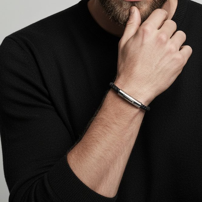 Symbole de caractère et de raffinement, avec ce bracelet en cuir tressé vous incarnerez l’équilibre parfait entre force et sobriété. Chaque brin de cuir, sélectionné pour sa souplesse et sa résistance, est minutieusement tressé pour créer une texture à la fois noble et authentique.