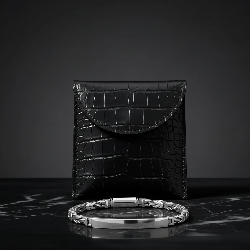 Porté par un homme de caractère, il incarne la force maîtrisée et la confiance en soi. Élégant sans effort, il reflète la puissance tranquille de ceux qui avancent avec assurance, entre distinction et détermination.