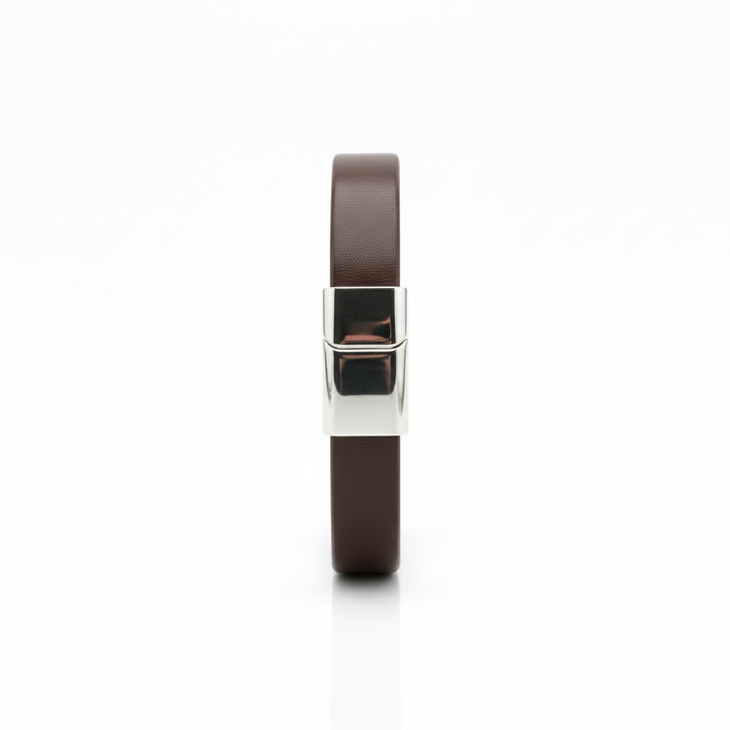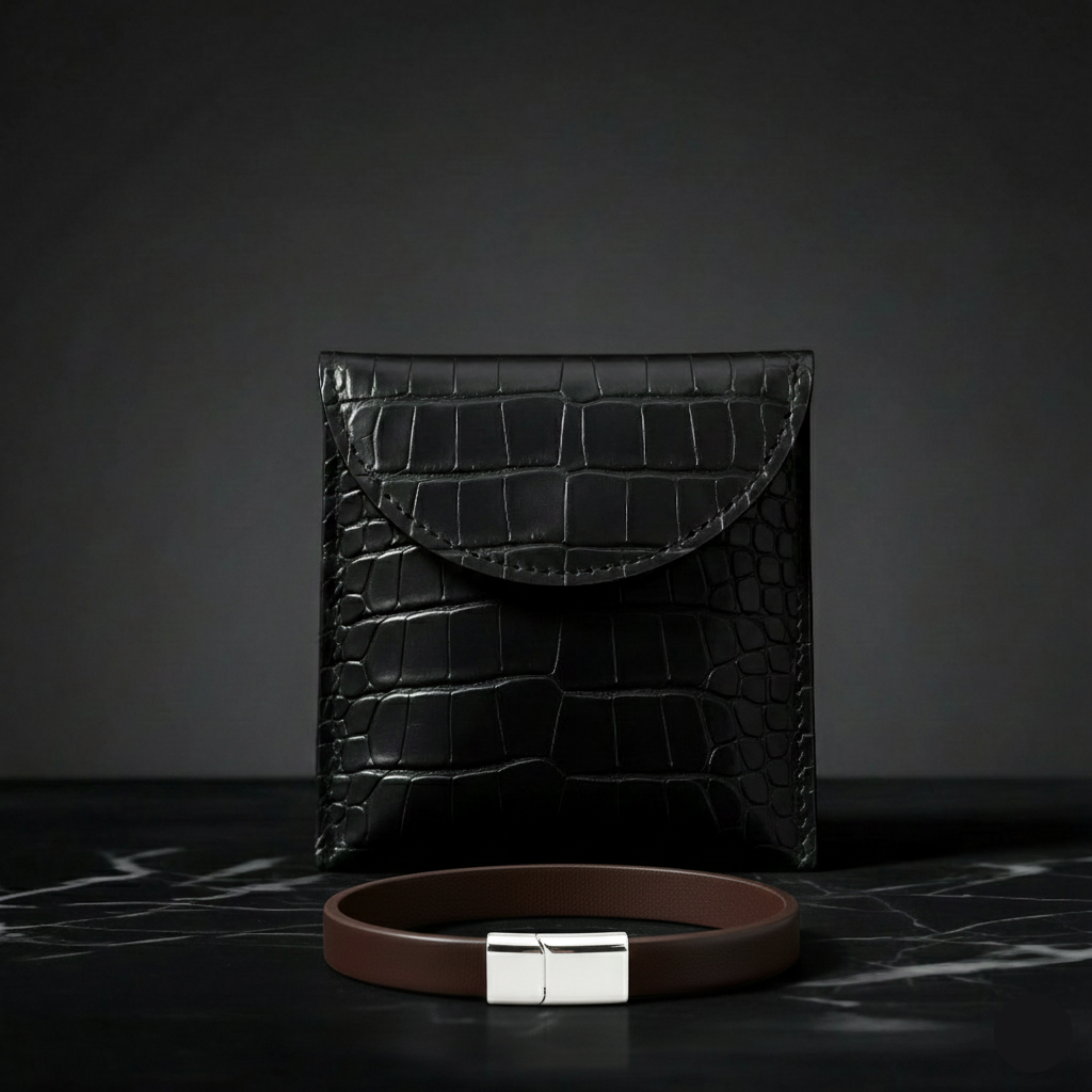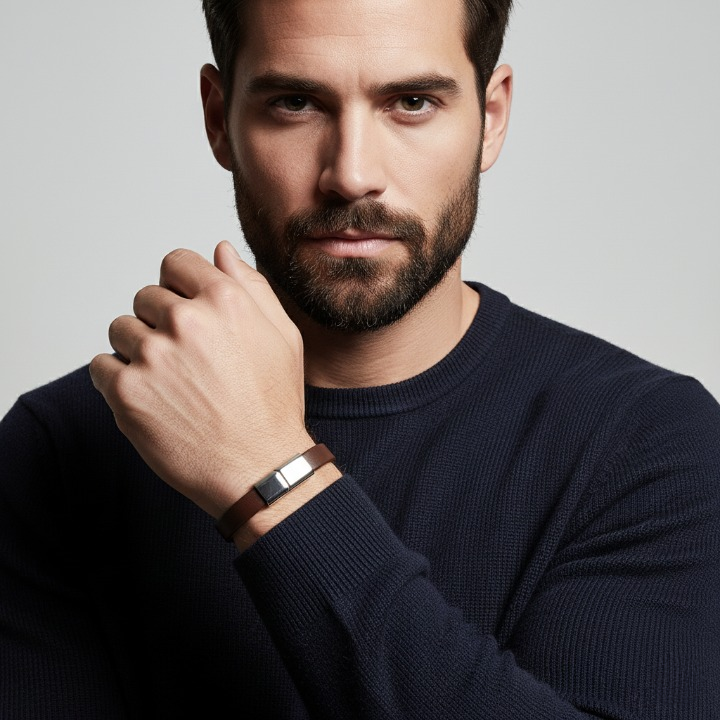 Ce bracelet en cuir incarne l’élégance minimaliste et la force tranquille. Conçu pour l’homme qui apprécie la simplicité raffinée, il se distingue par ses lignes nettes, son cuir lisse et son fermoir métallique poli, symbole d’un goût sûr et d’une assurance naturelle.