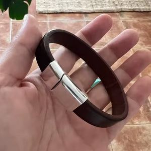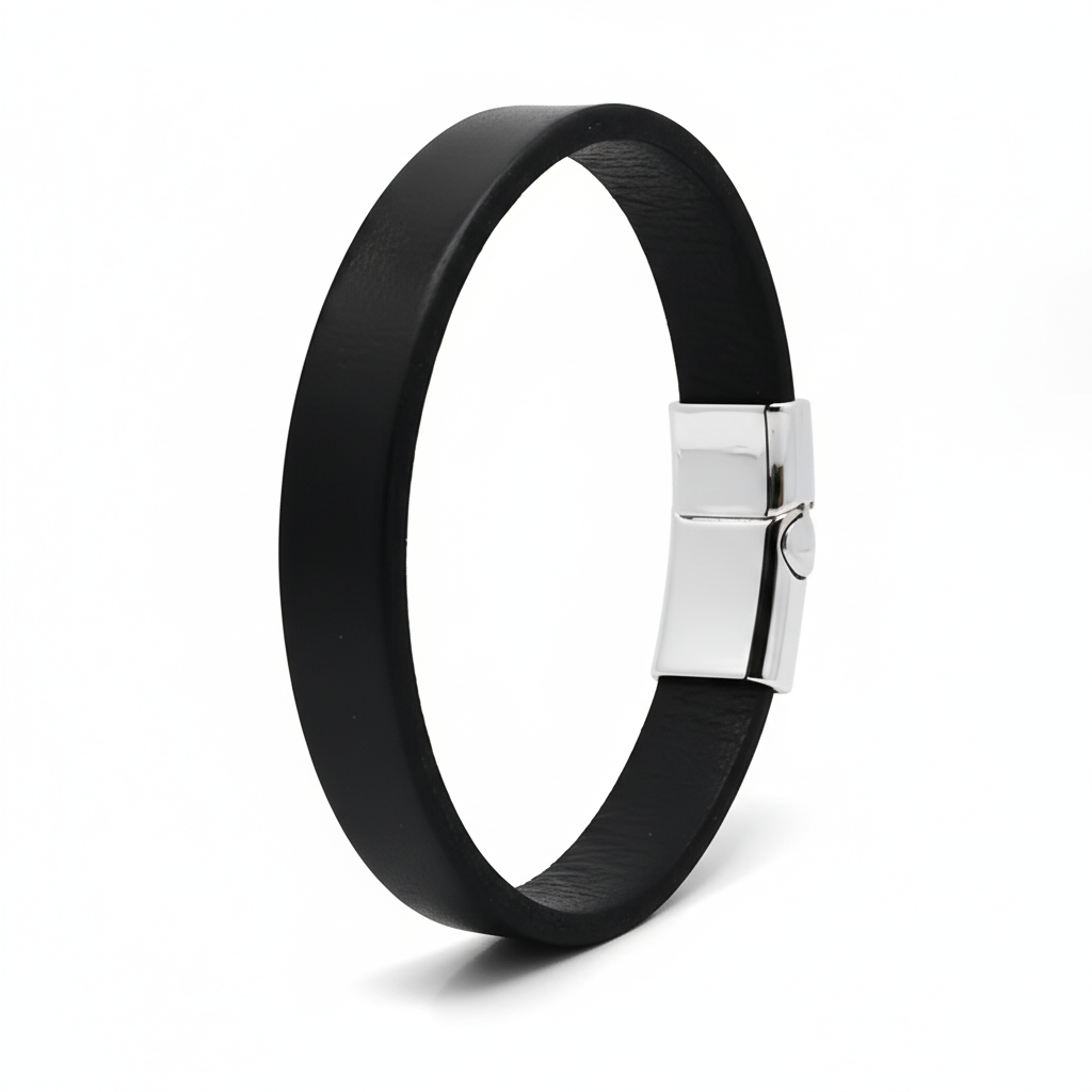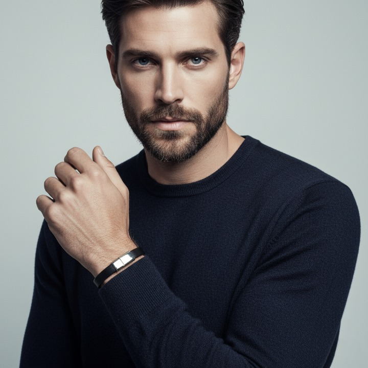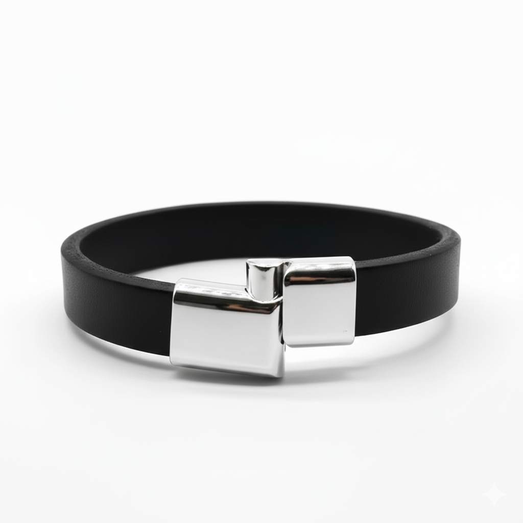 Ce bracelet en cuir incarne l’élégance minimaliste et la force tranquille. Conçu pour l’homme qui apprécie la simplicité raffinée, il se distingue par ses lignes nettes, son cuir lisse et son fermoir métallique poli, symbole d’un goût sûr et d’une assurance naturelle.