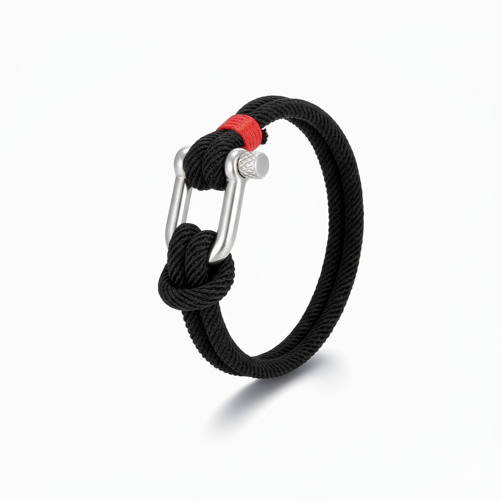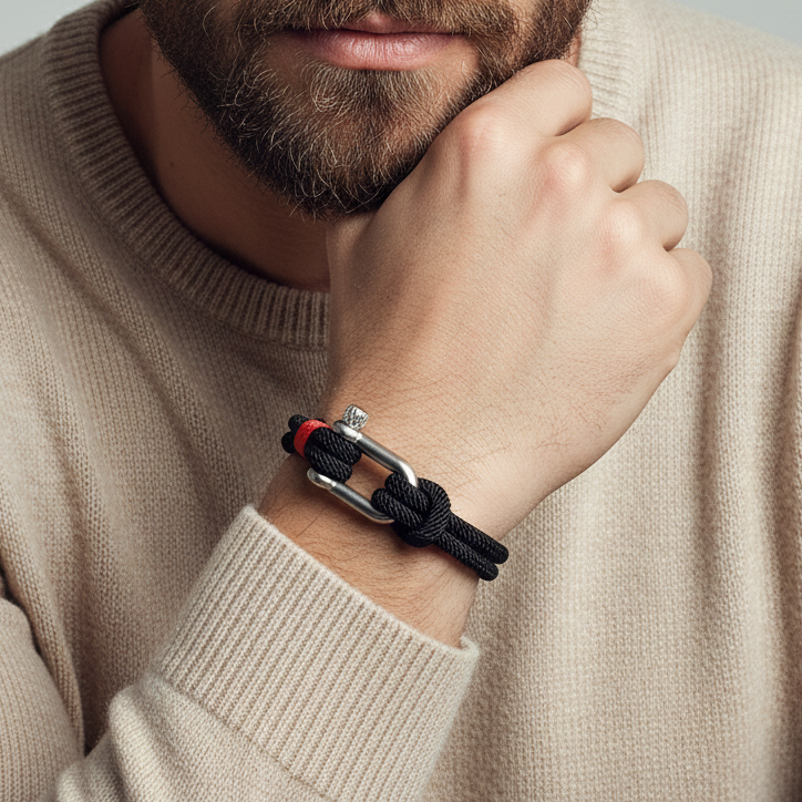 Épuré mais singulier, ce bracelet exprime un style masculin affirmé, sans ostentation. La manille en acier, empruntée à l’univers marin, apporte une touche technique et distinguée, tandis que la corde tressée offre confort, résistance et souplesse. Ensemble, ils créent une harmonie parfaite entre aventure et sophistication.