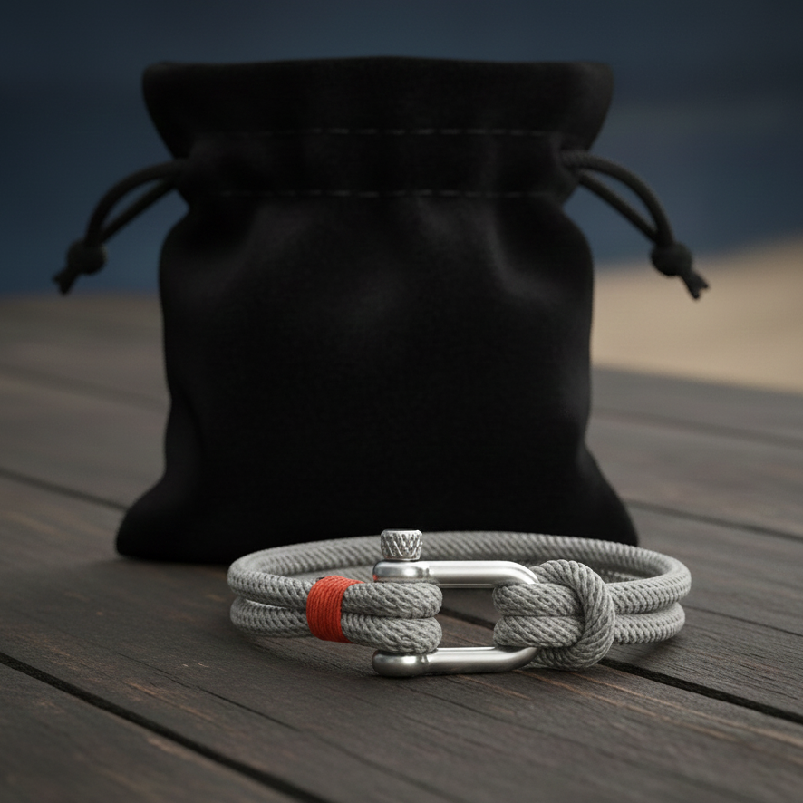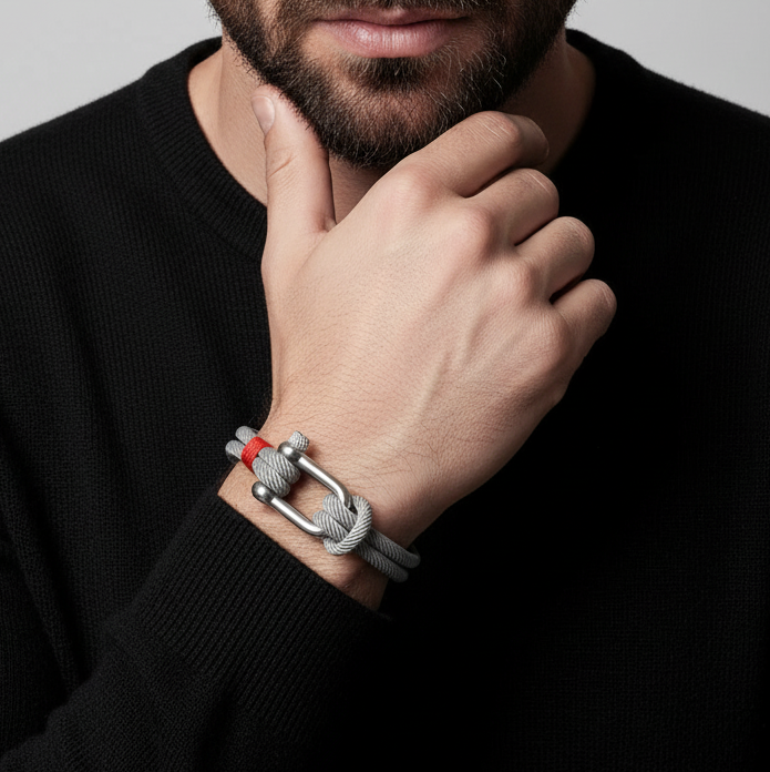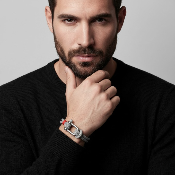 Épuré mais singulier, ce bracelet exprime un style masculin affirmé, sans ostentation. La manille en acier, empruntée à l’univers marin, apporte une touche technique et distinguée, tandis que la corde tressée offre confort, résistance et souplesse. Ensemble, ils créent une harmonie parfaite entre aventure et sophistication.
